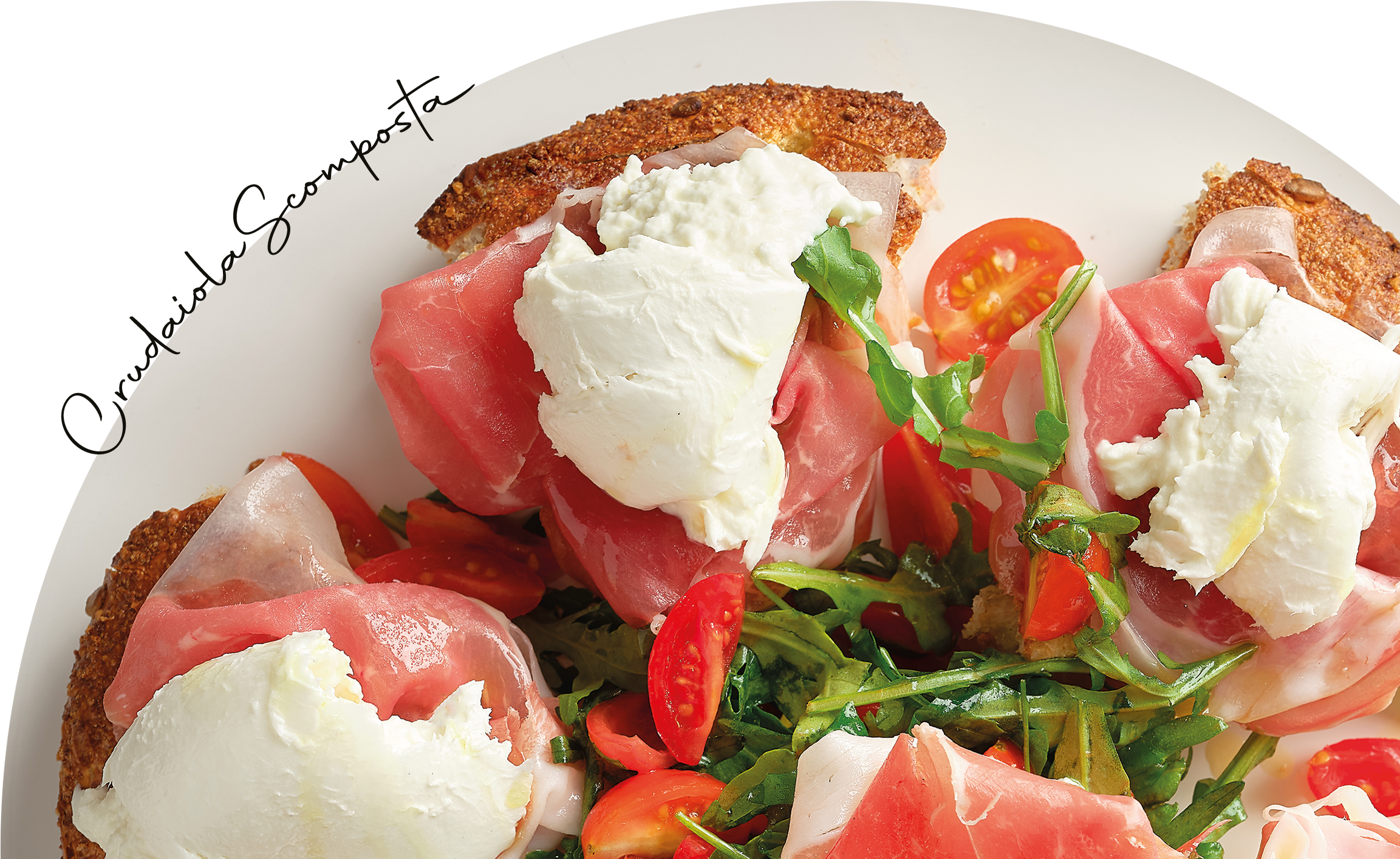 A fine cottura: culatta Salumificio Villani, rucola, datterini e mozzarella di bufala D.O.P. “il Casolare” e olio evo.